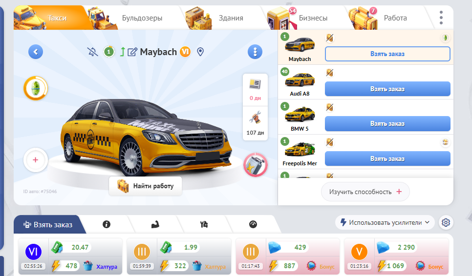 В начале Вам доступна лишь механика выполнения заказов на такси, но как только вы заработаете серьезные деньги(а если Вы достаточно уверенны в себе, можно еще раньше - взяв кредит или рассрочку) перед вами откроются новые возможности: