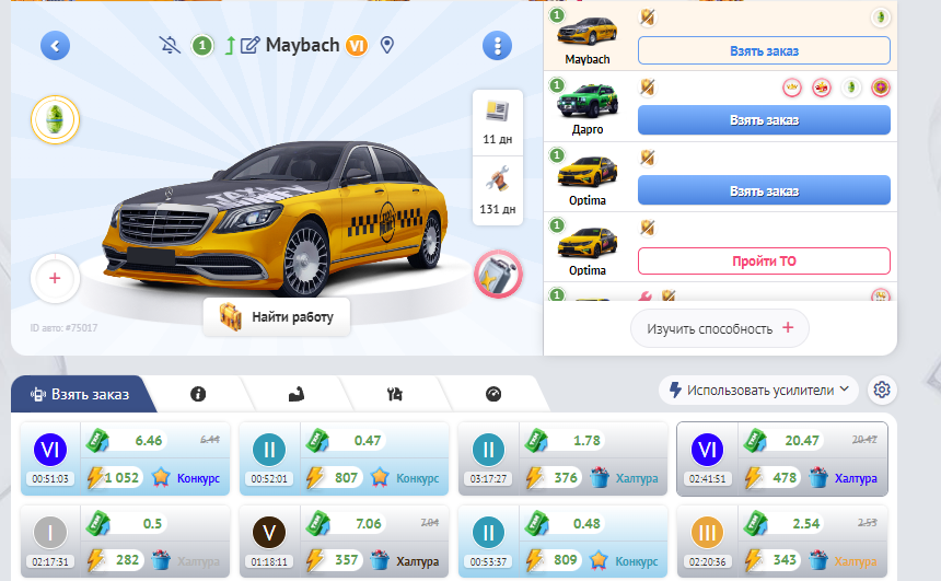 Полученные средства вы можете вывести из игры на все виды счетов и электронные кошельки, или улучшить свое такси, чтобы выполнять еще больше заказов.