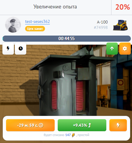 Гончар может работать с любым свободным заказом на Фабрике бонусов. Его работа состоит в том, чтобы выбрать активный заказ и либо сократить время изготовления бонуса (для этого нажмите на желтую кнопку слева в блоке цеха), либо увеличить размер бонуса (для этого нажмите на зелёную кнопку справа в блоке цеха).