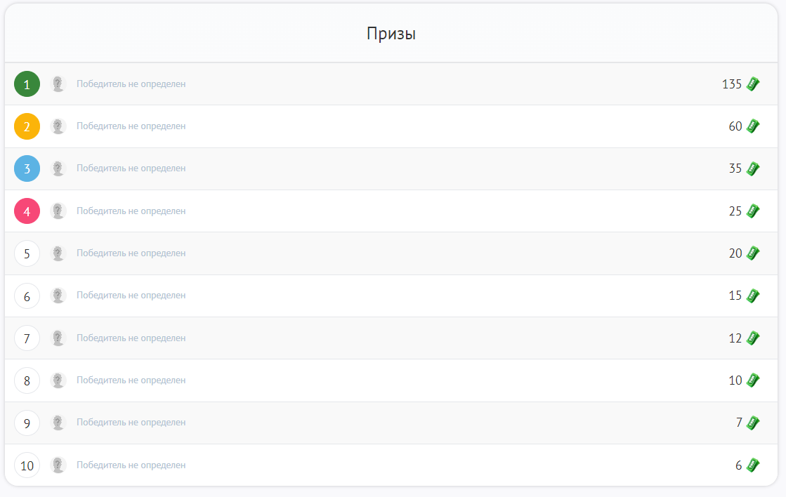 Один игрок может быть одновременно в нескольких группах конкурса (если он участвует в конкурсе на авто разных уровней). В этом случае будет начислен только один приз — самый ценный.