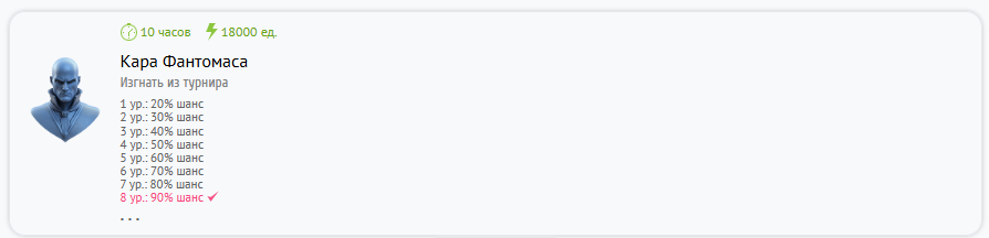 Как и все способности “Кара Фантомаса” имеет шанс срабатывания. На 1ом уровне - это 20%, на 8ом - 90%