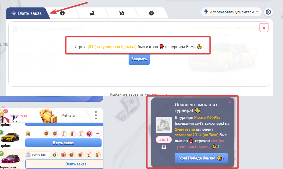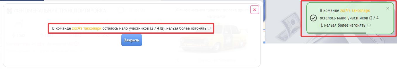 Ваш оппонент также будет получать уведомления о том, что выгнали его или члена его команды