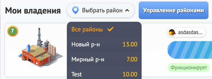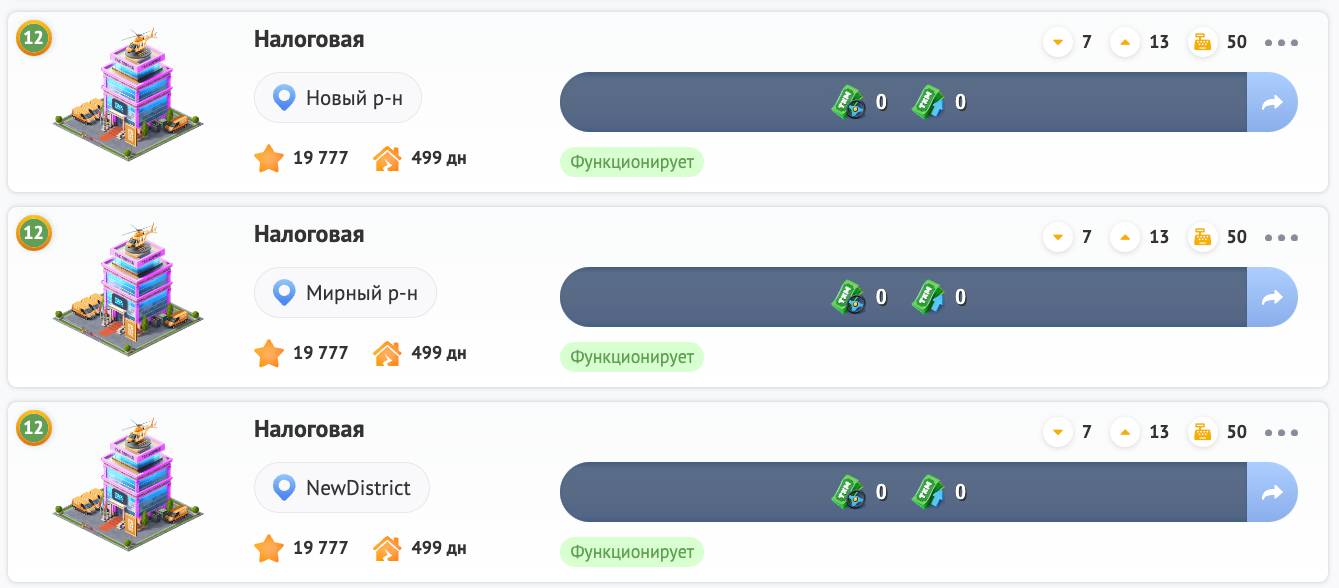 Если Вы владелец налоговой, то становитесь мэром района, в котором эта налоговая построена и регулируйте доход со всех операций в этом районе. Будь то доход от выполненных заказов, покупку участков и возведение зданий или выполненные услуги в бизнесах.