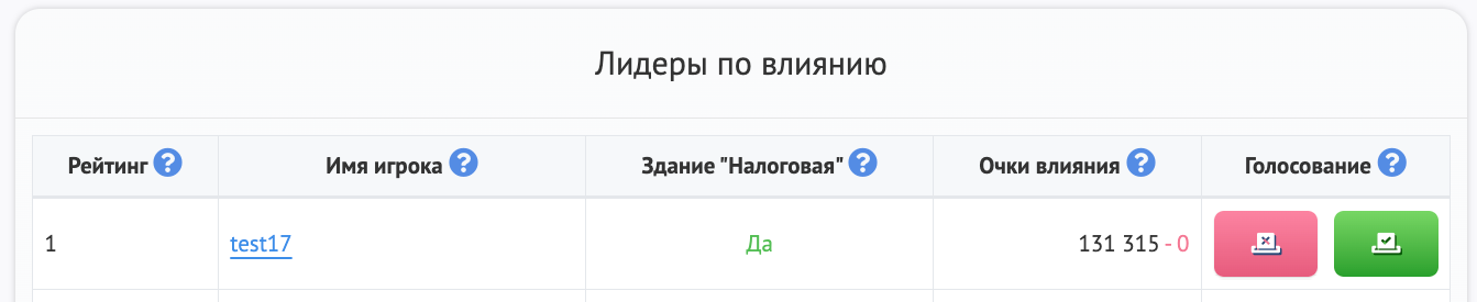 Победителем выборов становится пользователь с наибольшим количеством очков влияния.