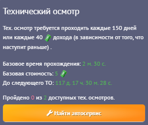 Технический осмотр наступает каждые 150 дней, или при достижении 4х кратного дохода от стоимости автомобиля.