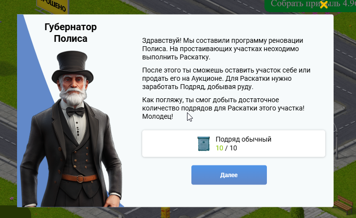 В Полисе есть участки земли, собственники, которых давно не появлялись в полисе. Такие участки отмечены специальными табличками. Раскатывайте эти участки и забирайте их себе или продавайте на аукционе и получайте прибыль!
