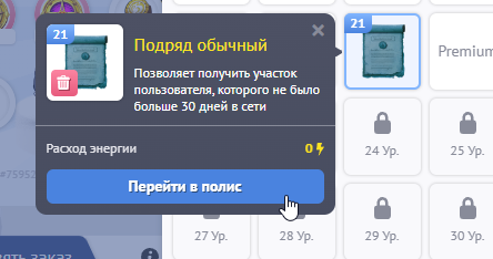 Собрав необходимое количество подрядов у себя в инвентаре, нажимаем “Перейти в полис”