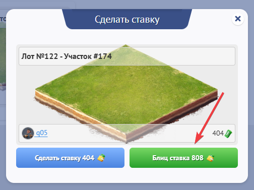 2. Блиц ставка - это сумма х2 от текущей ставки, нажимая на нее лот мгновенно выкупается