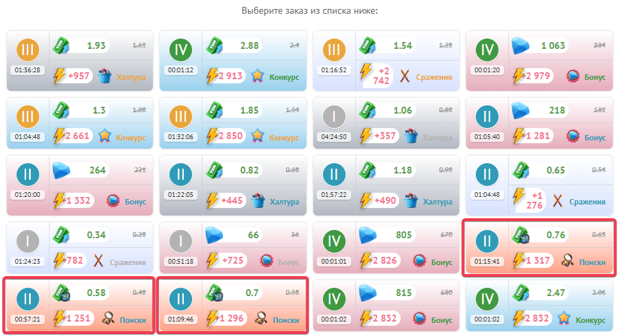 • Снижение расхода кристаллов на поиск заказа (действует на все типы заказов)