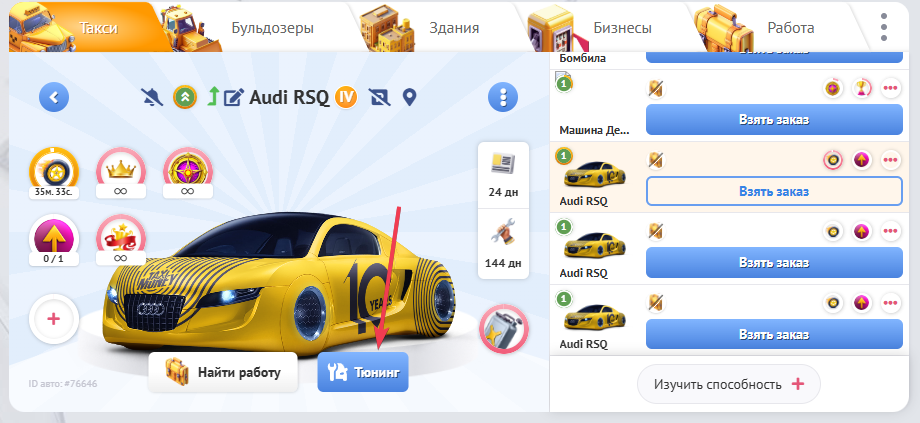 Вам нужно перейти на страницу этого такси, где у Вас будет доступна кнопка “Тюнинг” и нажать на нее