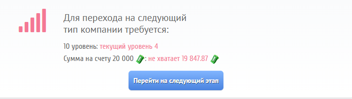 Уровень компании можно будет повысить после выполнения зависящего от него количества заказов.