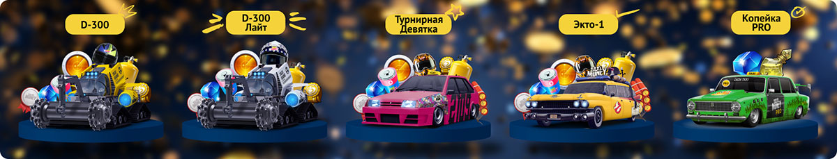 Помимо бульдозеров D-300, D-300 Лайт и такси Турнирная Девятка игра подарит тебе Копейку, Копейку PRO, Polo или Optima + кэшбек в подарок за депозиты на соответствующие суммы.